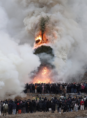 정월대보름인 3일 오후 경북 청도군 청도천 둔치에서 열린 달집태우기 행사에서 시민들이 타오르는 불길을 바라보며 저마다의 소원을 빌고 있다. 달집태우기는 달집에 각자의 한 해 액막이와 소원성취 문구를 붙인 뒤 불을 질러 액운을 떨치고 가족과 이웃의 안녕과 화합을 비는 ..