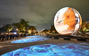 [기사발신지=연합뉴스, 연합뉴스 사진] 15일 오후 경북 경주시 보문단지 호반 광장에서 APEC 보문단지 야간경관개선 '빛의 향연' 시연회가 진행되고 있다. 시연회에서 거대한 알 모양의 APEC 상징 조형물에 미디어 아트가 진행되고 있다.[기사발신지=연합뉴..