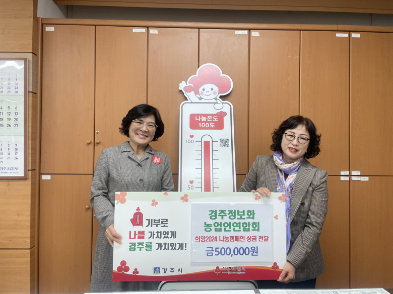 경주정보화농업인 연합회(회장 김태선)는 지난 5일 경주시청을 방문해 희망2024 나눔캠페인 성금 50만원을 전달했다.