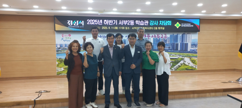 경산 서부2동행정복지센터는 지난 11일 서부2동행정복지센터 2층 회의실에서 강사 및 주민자치위원이 참석한 가운데 2025년 하반기 서부2동학습관 강사 차담회를 가졌다. 이번 행사는 하반기 프로그램 운영에 앞서 강사들과의 소통을 통해 마을 중심의 평생학습 발전 방안을 함께 모색하고자 마련됐다.이날 차담회는 △2025년 상반기 운영 성과 공유 △하반기 강좌 방향 안내 △자유로운 의견 나눔 등의 순서로 진행되었다. 특히 강사 간 정보 공유를 통해 프로그램 품질을 높이고, 주민 참여를 확대할 수 있는 아이디어들이 논의되었다.서부2동 학습관은 현재 주민 맞춤형 20개 강좌를 통해 다양한 계층의 평생학습 수요를 충족시키고 있다. 이번 하반기에도 댄스스포츠, 탁구, 라인댄스, 기타교실 등 주민 수요에 부합하고 보다 실용적이고 질 높은 학습 기회를 제공할 계획이다.김순근 서부2동장은 “이번 차담회는 강사님들의 생생한 현장 의견을 듣고 발전적인 방향을 함께 고민하는 뜻깊은 시간”이라며 “앞으로도 서부2동학습관이 삶의 질을 높이는 소중한 배움터가 될 수 있도록 적극 지원하겠다”고 밝혔고, 현응채 서부2동 주민자치위원장은 “강사 한 분 한 분의 열정이 주민들에게 긍정적인 변화로 이어진다”며 “앞으로도 학습관이 마을공동체의 중심이 되도록 함께 노력하겠다”고 전했다.