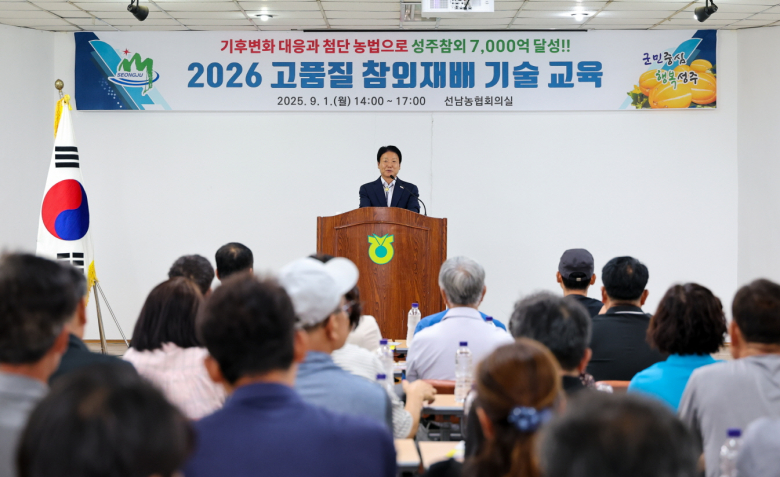 8회 걸쳐 600여명 농업인 병해충 방제 대책 등 전달성주군은 기후변화에 따른 농업 환경 변화에 선제적으로 대응하고 고품질 참외 생산을 위해 1~11일까지 8회에 걸쳐 600여 명의 농업인을 대상으로 읍면 순회 농업인실용교육을 실시 한다. 이번 교육은 참외품질 향상을 위한 재배기술 중에서도 올해 문제가 되었던 이상기후에 따른 참외 출하량 급감 및 홍수 출하에 대한 대책과 가스피해 등 영농현장에서 발생한 애로사항 해결 및 병해충 방제 대책에 대한 내용으로 교육이 진행된다. 성주군은 “기후변화와 농업환경 변화에 능동적으로 대응할 수 있도록 최선을 다하며, 농업인이 체감할 수 있는 실질적인 교육과 정책을 지속 확대해 나가겠다”고 말했다.한편, 대한민국 참외 생산의 중심지인 성주군은 전국 참외 생산량의 약 80%를 차지하며 지역 경제의 핵심 기반 역할을 하고 있다. 군은 이번 교육을 통해 고품질 참외 생산을 유지하고 농업인 소득 증대에 기여함으로써, `명품 성주 참외`의 명성을 이어 나갈 계획이다.새해농업인실용교육은 농업인의 한해 영농계획 수립을 위해 최신 연구 농업기술과 핵심 영농기술을 보급함과 동시에 경쟁력 확보와 소득 향상에 도움을 주고자 매년 실시하는 맞춤형 교육으로 다음 일정표를 참고하여 교육 시작 시간 전에 참석하면 교육을 받을 수 있다.도재훈 기자