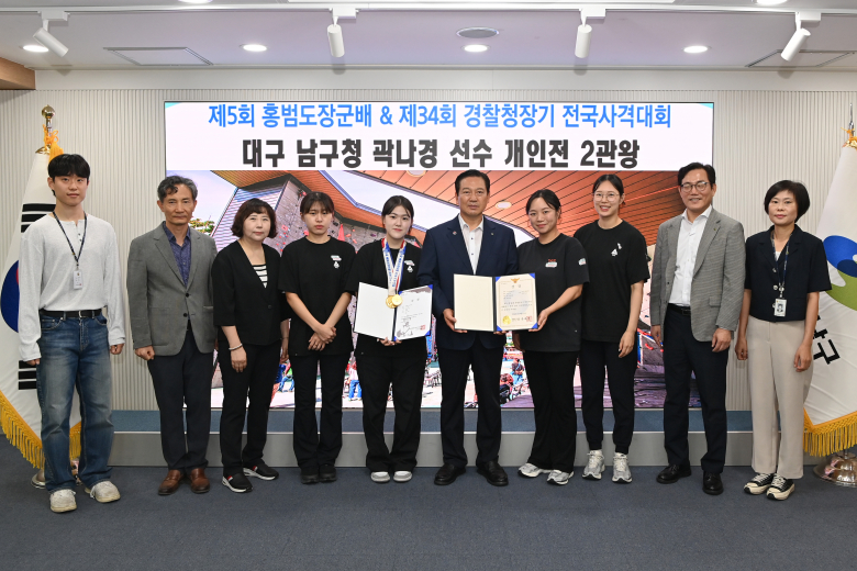 대구 남구 사격선수단 소속 곽나경 선수가 지난 9월 3일부터 13일까지 열린 제5회 홍범도장군배와 제34회 경찰청장기 전국사격대회 여자 25m 화약권총 개인전에서 모두 1위를 차지하여 2관왕을 달성했다. 또한 한유정, 강민정, 곽나경, 송현지 선수로 구성된 대구 남구청 사격선수단은 지난 6월 회장기 전국사격대회 단체전 3위에 이어, 이번에도 우수한 성적을 거두며 저력을 입증했다. 박은영 감독은 “선수들이 흔들림 없이 훈련에 임한 결과가 성과로 이어져 기쁘다.”라며, “앞으로도 전국체전 등 주요 대회를 앞두고 집중력을 높여 더 좋은 결과를 만들겠다”라고 말했다. 곽나경 선수는 “이번 수상은 개인의 성과를 넘어 팀 전체의 노력 덕분”이라며, “다가오는 경호처장기와 전국체전에서도 좋은 모습을 보여드리기 위해 최선을 다하겠다”라고 밝혔다. 조재구 남구청장은 “우리 선수단이 연이어 좋은 성과를 거둔 것은 선수들과 감독의 땀과 노력이 빚어낸 값진 결실”이라며, “앞으로도 구민들의 관심과 성원 속에 남구 체육이 더 크게 도약할 수 있도록 적극 지원하겠다”라고 말했다.