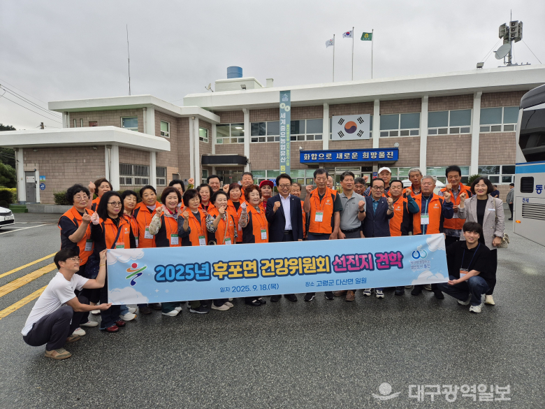 [울진=도순환 기자] 울진군(군수 손병복)후포면 건강위원과 담당자 등 30여 명이 건강마을 조성사업의 원활한 추진을 위해 지난 9월 18일 고령군 다산면을 찾아 선진지 견학을 실시했다. 후포면 건강마을 조성사업은 주민이 함께 신체적, 사회적, 정신적, 환경적으로 건강한 마을을 만들기 위한 다양한 사업을 제안하고 실천하는 건강사업으로 울진군 건강마을 조성사업에 매화면, 죽변면에 이어 3번째로 선정되어 올해 1년 차 사업을 추진중이다. 이번 선진지 견학은 울진군 후포면 건강위원회(위원장 김영호)가 주축이 되어 2024년 경상북도 건강마을 조성사업의 우수마을로 선정된 고령군 다산면 일원을 다녀왔다. 이를 통해 다산면 건강마을 추진 방안과 우수사례를 공유하며 후포면 건강마을 조성사업에 접목할 수 있는 접목할 수 있는 실천 방안을 모색하는 계기가 됐다. 김영호 위원장은“우수 건강마을의 우수사례와 건강위원들의 현장경험을 많이 배워서 우리 마을 건강사업을 내년에 본격적으로 잘 펼칠 수 있을 것 같다”라고 소감을 전했다. 손병복 울진군수는“이번 선진지 견학이 건강위원의 역량 강화와 화합의 기회가 되었길 바라며, 앞으로 후포면이 더 건강한 마을로 성장할 수 있도록 건강위원들의 많은 활약을 기대한다”라고 말했다.
