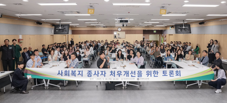 대구 수성구의회와 남구의회는 지난 18일 수성구청 대강당에서 사회복지종사자 처우개선을 위한 토론회를 공동 개최했다.이번 토론회는 사회복지 현장의 목소리를 직접 듣고 실질적인 개선 방안을 모색하고자 두 의회가 뜻을 모아 마련됐다.토론회에는 대구사회복지사협회, 노인시설, 장애인시설, 청소년·아동시설 등 다양한 분야의 사회복지 종사자와 관계 공무원 등 약 100여 명이 참석해 현장의 목소리를 공유했다.1부에서는 수성구의회 정대현 의원과 남구의회 강민욱 의원이 발제자로 나서 각 지역의 사회복지 종사자 처우개선 사례와 현황을 발표하며 정책적 과제와 개선 방향을 제시했다.이어 2부에서는 참석자들이 조별 테이블 토론을 진행해 현장에서 체감하는 애로사항과 제도 개선 요구사항을 논의했고, 이후 질의응답을 통해 다양한 의견을 나눴다.이날 토론회에는 수성구의회 문화복지위원회 최현숙, 백지은, 박영숙, 김희섭 의원이 참석해 의견을 청취했으며, 양 구청 담당 부서장이 함께 자리해 실질적인 해결책을 모색했다.수성구의회 정대현 의원은 “의회 차원에서 사회복지 일선의 종사자 분들과 함께 이러한 자리를 마련할 수 있어 매우 뜻깊었다”며 “앞으로도 현장의 목소리에 귀 기울일 수 있도록 노력하겠다”고 밝혔다.수성구의회와 남구의회는 이번 토론회를 계기로 현장 중심의 사회복지 종사자 처우개선을 위한 지속적인 협력과 정책 마련을 이어갈 계획이다.