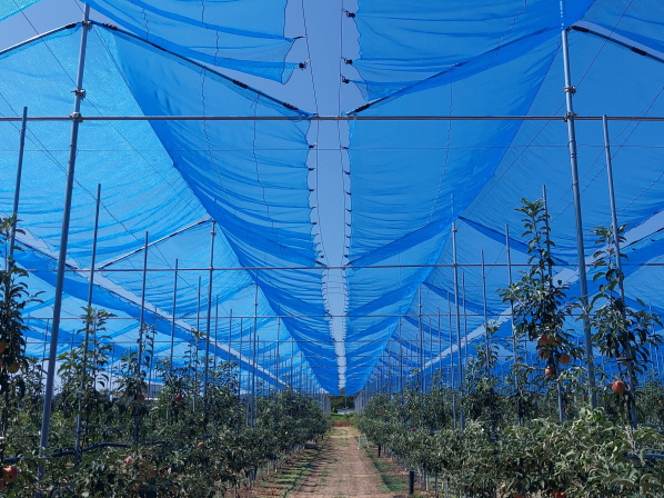 2019년 의성군 제안으로 농촌진흥청 국비사업 채택의성군이 특허 출원한 커튼형 햇빛차단망 시설이 전국 농가에 본격 보급된다.햇빛차단망은 여름철 과수 상부에 청색 망을 설치해 과일의 햇볕데임(일소) 피해를 줄이는 기술이다. 2019년 의성군 제안으로 농촌진흥청 국비사업에 채택돼 전국 시범사업으로 활용되며 효과가 입증됐으나, 높은 설치비로 인해 보급 확대에는 한계가 있었다. 이에 의성군은 농가 부담을 줄이기 위해 커튼형 구조를 새롭게 고안했으며, 2024년 현장실증 결과 기존 대비 약 30% 설치비 절감과 사후관리 편리성을 확보한 모델을 개발해 실용신안특허(제20-049971호)를 취득했다.커튼형 햇빛차단망은 기존 기술의 효과인 △일소피해 감소(5%↓), △상품과 비율 향상(11.6%↑), △수확량 증가(10.4%↑), △착색도 개선(20%↑)을 유지하면서도 설치비를 줄일 수 있어 농가 확대 보급에 유리할 것으로 기대된다.군은 이번 ‘비용절감 커튼형 햇빛차단망 시설’의 확대 보급을 위해 기술이전 통상실시 계약을 체결할 계획이며, 향후 5년간 단계적으로 전국 농가 보급될 전망이다.김주수 의성군수는 “연일 폭염이 이어지는 재배환경에서 햇빛차단망은 고품질 과일 생산의 필수 기반이 될 것”이라며, “의성군이 개발한 선행기술을 바탕으로 농가 부담을 덜고, 재해에 강한 지속 가능한 농업 환경을 조성해 나가겠다”고 밝혔다.박재성 기자