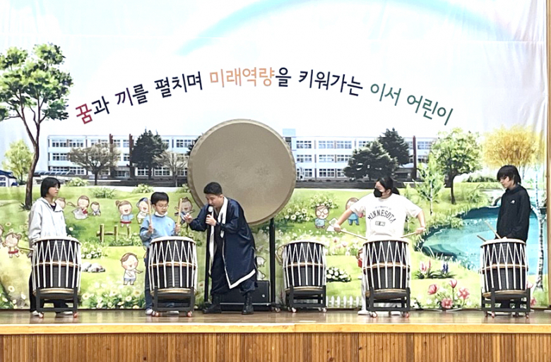 [청도=손정식 기자] 이서초등학교는 지난 3일 강당에서 전교생을 대상으로 ‘놀당갑서’ 국악 공연팀을 초청해 난타 공연 및 국악 체험 한마당을 실시했다.