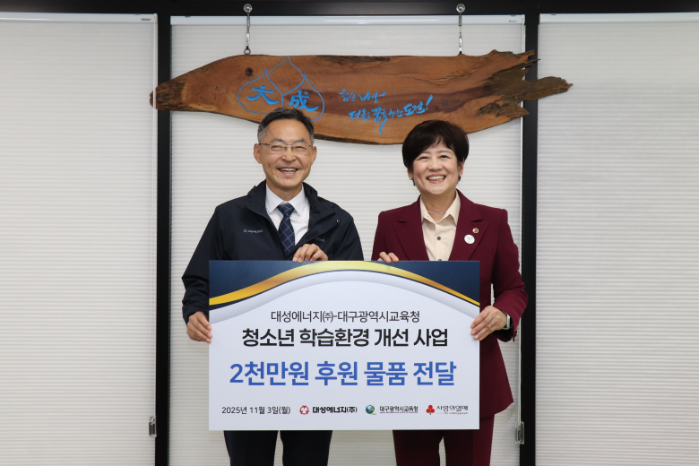 대성에너지㈜(대표이사 박문희)는 지난 3일 본사 접견실에서 대구시교육청과 함께 지역 내 취약계층 대상으로 “청소년 학습환경 개선 사업”을 위한 기부금 전달식을 진행했다.