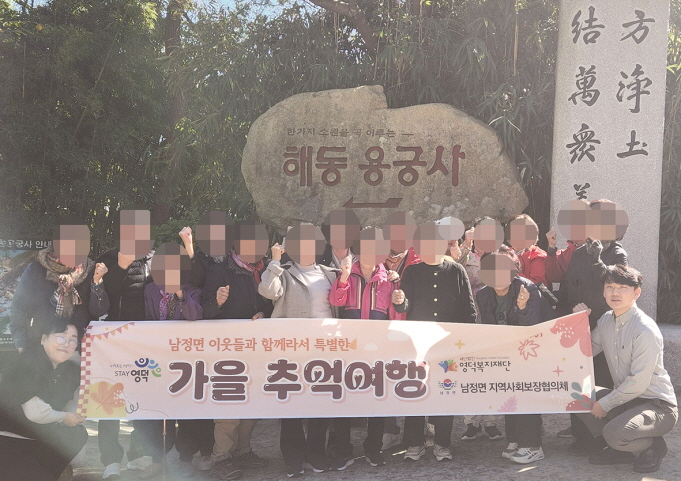 영덕군 남정면지역사회보장협의체 위원들이 관내 독거노인과 취약가구 11명을 초청해 지난 27일 함께 부산시 일원으로 가을 추억여행을 다녀왔다.