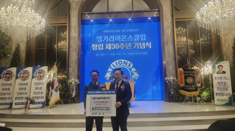 권오준 영가라이온스클럽 회장은 “창립 30주년을 맞아 지역의 어려운 이웃에게 따뜻한 마음을 전할 수 있어 뜻깊다. 앞으로도 영가라이온스클럽은 사각지대 없는 복지 실현과 지속적인 봉사활동에 최선을 다하겠다”고 말했다.