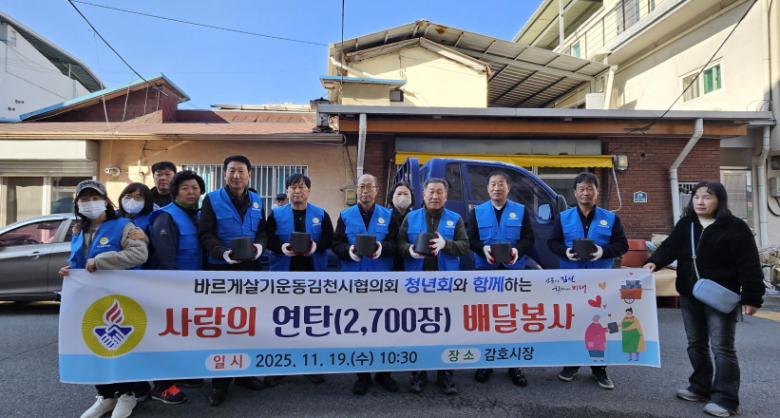‘사랑의 연탄 배달’은 한파에 취약한 이웃들이 따뜻한 겨울을 보낼 수 있도록 연탄을 전달하는 활동으로, 2015년도부터 바르게살기운동김천시협의회 청년회 주관으로 지속 추진되고 있다.