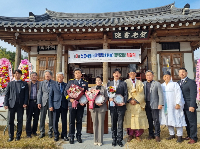 [김천=장완익 기자] 김천시는 지난 23일 양천동 하로서원에서 조선 전기 청렴한 관직생활을 통해 청백리에 오른 하로마을 출신 노촌 이약동 선생의 청백리 정신을 기리기 위해 제8회 노촌 이약동 청백리상 시상식을 개최했다.