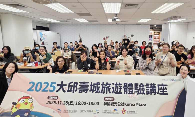 이번 행사는 수성구의 첫 대만 현지 홍보회로, 평일 낮 시간임에도 코리아센터 수용 인원을 가득 채운 40여 명의 참가자가 참여하며 높은 관심을 보였다.행사에서는 대만 한국여행 전문 블로거 황소혜 씨와 함께 다례·한복, 전통요리, 공예체험 등 한국 전통문화 체험을 중심으로 한 수성구 여행 코스를 소개했으며, 참가자들과 함께 들안예술마을 청년공방의 자개 키링 만들기 체험도 진행했다.특히 뚜비 굿즈를 제공하는 ‘수성구 관광지 퀴즈 타임’에서는 참가자들이 적극적으로 정답을 맞추며 뜨거운 호응이 이어졌고, 수성구 방문 방법과 체험 예약 절차 등에 대한 질문이 활발히 나오는 등 수성구 관광 콘텐츠에 대한 높은 관심을 확인할 수 있었다.수성문화재단은 올해 일본에 이어 대만을 의료·웰니스 관광 제2의 전략 국가로 지정하고, 수성못 관광안내소 ‘모티’에서 대만 관광객 대상 환영 이벤트 ‘웰컴 투 수성(Welcome to Suseong)’을 진행하고 있다.또한 ‘제38차 한·대만 관광교류회의’ 참석을 통해 대만 관광업계에 전통문화 체험 관광지를 소개하고, 대만의 한국여행 블로거들과 함께 ‘문화도시 수성 투어’를 기획하는 등 대만 관광객 유치를 위한 홍보 마케팅을 강화하고 있다.내년에는 대구시 자매도시인 타이베이시의 대표 캐릭터 ‘브라보베어’를 수성구에 초청해 공동 홍보 프로젝트를 추진할 계획으로, 대만 관광시장 공략에 더욱 박차를 가할 예정이다.김대권 이사장(수성구청장)은 “대만은 해외여행과 타국 문화에 대한 관심이 매우 높은 지역”이라며 “수성구의 다양한 전통문화와 웰니스 콘텐츠를 통해 대만 방문객들에게 특별한 여행 경험을 선사하겠다”고 밝혔다.