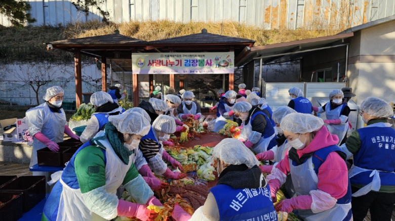 [구미=장완익 기자] 구미시는 12월 9일 형곡1동행정복지센터 주차장에서 바르게살기운동구미시협의회 여성회(회장 김진애) 주관으로‘사랑나누기 김장 봉사’활동을 펼쳤다.