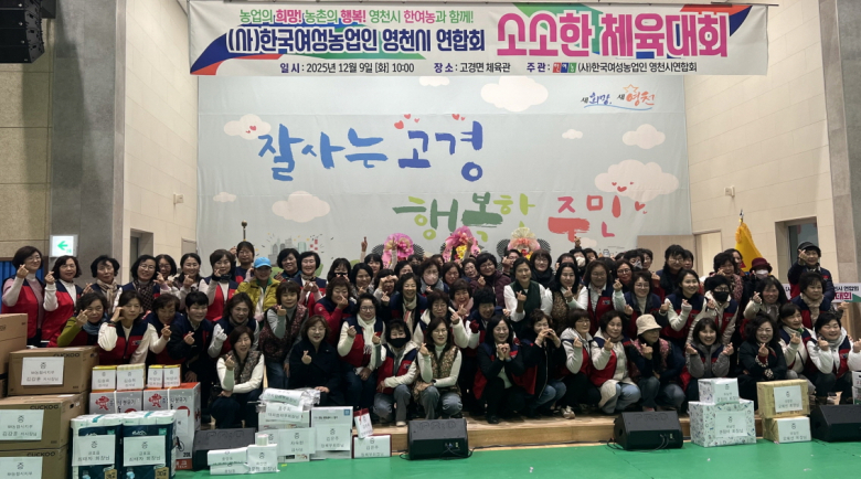 [영천=최은하 기자] 한국여성농업인 영천시연합회(이하 한여농 영천시연합회)는 9일 고경체육관에서 ‘한여농 영천시연합회 소소한 체육대회’를 성황리에 개최했다.이번 체육대회는 한여농 영천시연합회에서 처음 개최한 공식 체육행사로, 150여 명의 회원들이 참석해 화합과 소통의 시간을 가졌다. ‘소소한 체육대회’라는 주제에는 규모는 크지 않지만 서로에게 따뜻한 의미가 되는, 말 그대로 ‘소소하지만 소중한 체육대회’라는 뜻이 담겨 있어 행사의 의미를 더했다.행사는 개회식을 시작으로 팀별 체육활동, 화합 프로그램, 레크리에이션, 시상 및 폐회 순으로 진행됐으며, 승부나 성적보다는 협동, 배려, 소통을 중심에 둬 누구나 편안하게 참여할 수 있는 프로그램으로 운영됐다.그동안 영농과 가사, 돌봄을 함께 책임지며 바쁜 일상을 이어온 여성농업인들은 이날만큼은 일상의 짐을 내려놓고, 부담 없이 웃고 즐기며 서로를 격려하는 재충전의 시간을 보냈다. 특히 읍·면·동 회원들이 한자리에 모여 자연스럽게 교류하고 유대를 다지는 뜻깊은 만남의 장이 됐다.이순옥 회장은 “처음 열리는 체육대회인 만큼 경쟁보다는 서로를 응원하고 함께 웃을 수 있는 ‘소소하지만 소중한 체육대회’로 준비했다”며, “이번 행사를 계기로 여성농업인들이 더욱 단단히 이어지고, 앞으로의 활동에도 큰 힘이 되길 바란다”고 말했다.시 관계자는 “의미 있는 첫 체육대회를 준비해 주신 한국여성농업인 영천시연합회와 참석해 주신 모든 회원 여러분께 감사드린다”며, “오늘 하루 안전하고 즐거운 시간이 되길 바란다”고 전했다.
