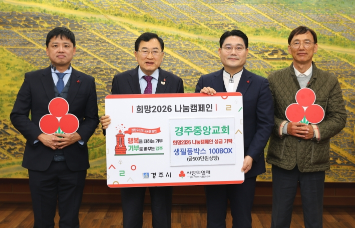 [경주=윤용찬 기자] 경주중앙교회 12월11일 경주시청을 방문해 어려운 이웃을 위해 ‘희망상자 100박스(생필품)’을 전달했다.