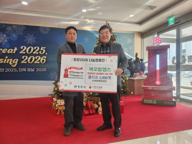 [경주=윤용찬 기자] 경주시는 지난 17일 오후 2시, 지역 기업 바오밥앱스(대표 박도영)가 경주시청 복지정책과를 방문해 물티슈 2,000개(240만 원 상당)를 기부했다고 밝혔다.이번에 기탁된 물품은 관내 취약계층을 비롯해 도움이 필요한 이웃들에게 전달될 예정이다.바오밥앱스는 재한 외국인과 다문화가정, 외국인 관광객을 위한 생활지원 애플리케이션 ‘망고(Mango)’를 운영하고 있다.해당 앱은 지역 상점과 의료기관, 생활편의시설 정보 제공은 물론 다국어 번역과 커뮤니티 기능을 통해 외국인의 지역 정착과 생활 편의 증진에 기여하고 있다.박도영 대표는 “작은 나눔이지만 지역 이웃들에게 도움이 되길 바란다”며, “앞으로도 ‘망고’ 앱을 통해 외국인과 지역사회를 잇는 역할을 꾸준히 이어가겠다”고 말했다.윤철용 경주시 복지정책과장은 “지역사회와 상생하는 따뜻한 나눔에 감사드리며, 기탁된 물품은 꼭 필요한 이웃들에게 소중히 전달하겠다.”고 밝혔다.
