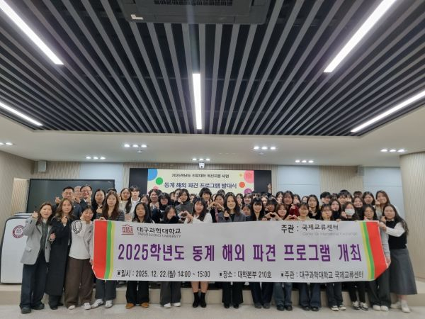 [대구=장완익 기자] 대구과학대학교(총장 박지은)는 지난 22일 교내 본부 하이브리드 실습실에서 ‘2025년 동계 해외 파견 프로그램’ 발대식을 열고 본격적인 해외 현장학습 일정에 돌입했다고 밝혔다.