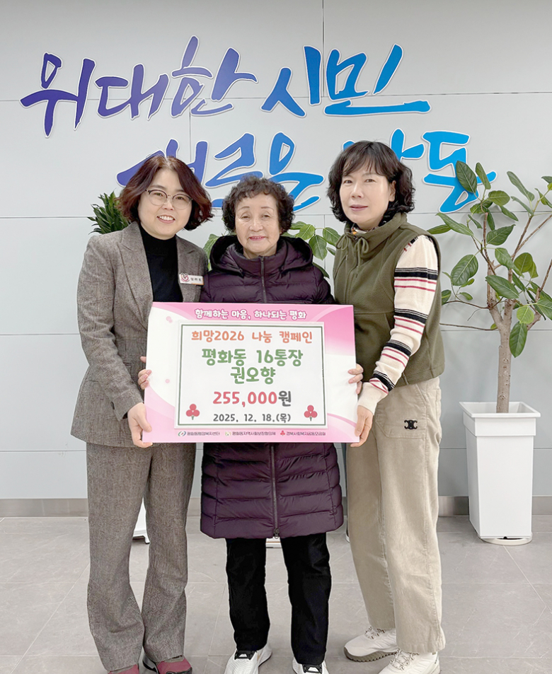 권오향 통장은 “큰 금액은 아니지만 오랜 시간 정성을 모아 마련한 성금이 어려운 이웃들에게 조금이나마 도움이 되길 바란다”며 “앞으로도 통장으로서 지역사회에 보탬이 되는 일을 꾸준히 이어가고 싶다”고 말했다.