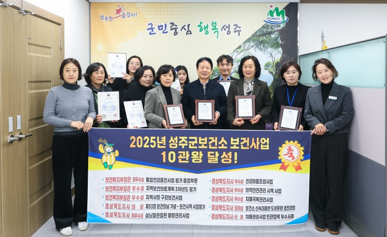 [성주=박노균 기자] 성주군은 군민 건강증진을 위한 맞춤형 보건의료서비스를 제공한 결과 2025년도 경북도 및 전국 평가에서 보건사업 10개 부문에서 수상하는 쾌거를 이루었다.
