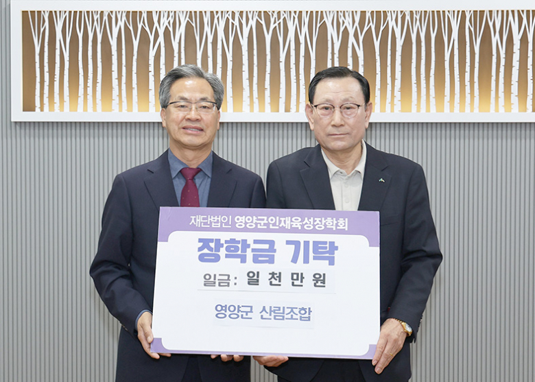 (재)영양군인재육성장학회 오도창 이사장은“어려운 시기마다 앞장서 나눔을 실천해 주시는 영양군산림조합에 깊은 존경과 감사의 말씀을 드린다”며 “전해주신 장학금은 학생들이 경제적 부담 없이 학업에 전념하고, 앞으로 영양군을 빛낼 인재로 성장하는 데 소중히 사용하겠다”고 밝혔다.