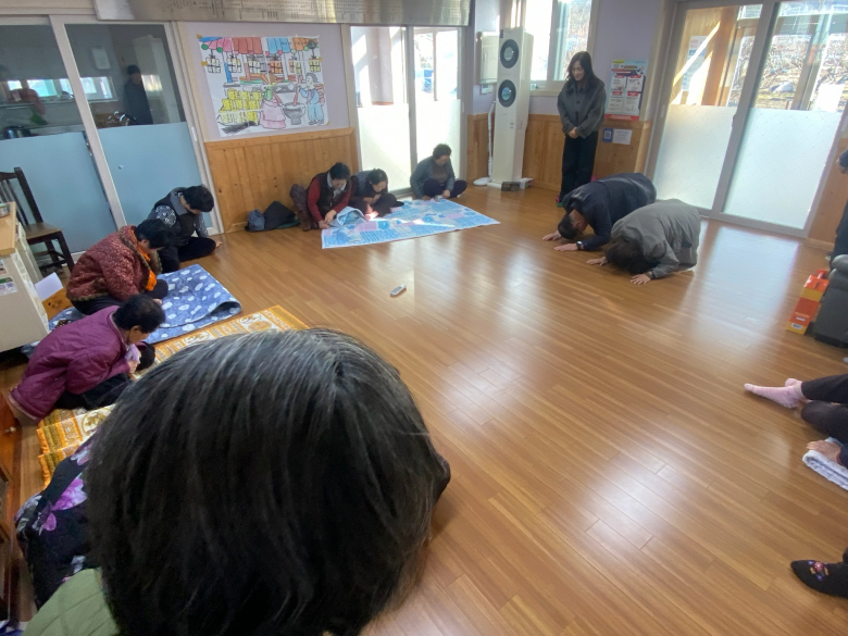 ▲경산 용성면 김제홍 신임면장이 주민들에게 새해 큰절을 하고 있다/사진=경산시 제공