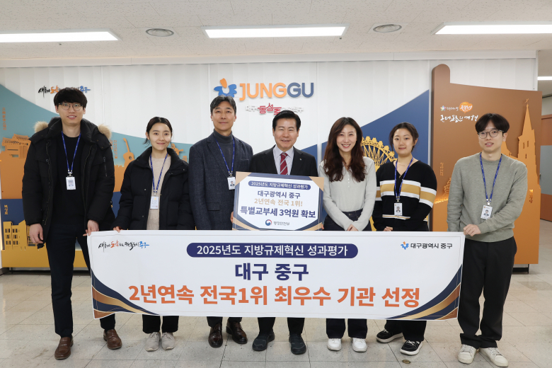 대구 중구(구청장 류규하)는 행정안전부가 주관한 ‘2025년 지방규제혁신 성과평가’에서 2년 연속 최우수 기관으로 선정되며 규제혁신 선도 도시로서의 위상을 다시 한번 입증했다.