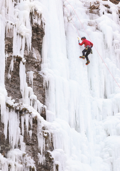15일 경북 의성군 의성구계빙장에서 전문 산악인들이 빙벽등반을 하고 있다. 연합뉴스