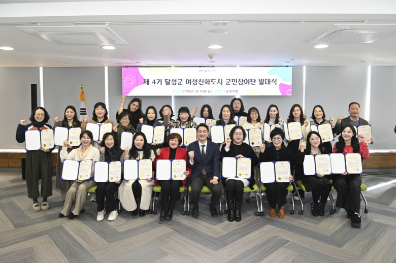 달성군은 지난 16일 달성군청 중회의실에서 ‘제4기 여성친화도시 군민참여단 발대식’을 열었다. 이번 발대식은 여성·아동·노인 등 모든 군민이 안전하고 행복한 지역사회를 만들기 위한 여성친화도시 조성의 일환으로 마련됐다. 이날 행사는 군민참여단원 30명이 참석한 가운데 위촉식과 향후 활동 안내 등이 진행됐다.도순환 기자