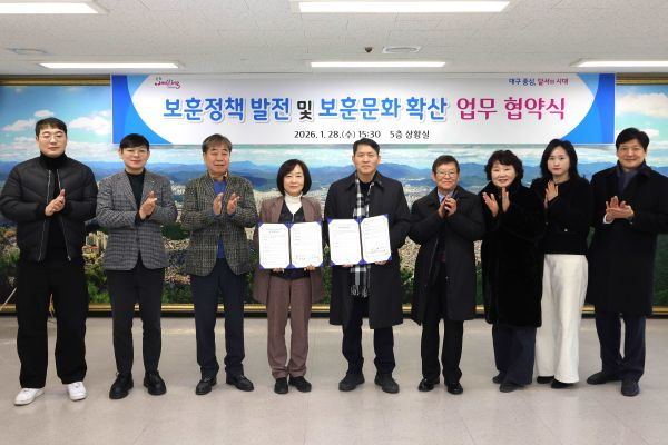 이태훈 달서구청장은 “이번 협약은 달서구 보훈행정의 전문성과 정책 역량을 한 단계 끌어올리는 중요한 출발점”이라며, “한국보훈포럼과의 지속적인 협력을 통해 국가유공자에 대한 예우를 더욱 공고히 하고, 모든 세대가 공감하는 따뜻한 보훈문화를 지역사회 전반에 확산해 나가겠다”고 말했다.