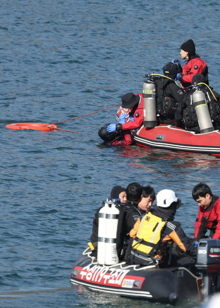 지난달 27일 대구 동구 봉무공원에서 대구소방안전본부 소방대원들이 동계 수난구조 훈련을 하고 있다.연합뉴스