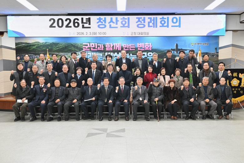군위군 기관․단체장 모임인 청산회(회장 : 김진열 군위군수)가 2월 3일 군청 대회의실에서 상반기 정례회의를 개최했다. 이날 회의에서는 ▲군위 거점학교 중심 교육 혁신 본격화 ▲TK 민·군통합공항 이전·건설사업 추진 ▲대구 군부대 통합 이전사업 본격 추진 ▲대구·경북 행정통합 ▲토지거래허가구역 조정(해제) 추진현황 ▲고향사랑기부 공공기관 상호기부 동참 등 주요 지역 현안에 대해 심도 있는 논의가 이루어졌다. 이어 설 명절을 맞아 사회복지시설 위문 안건을 의결하고 군위군 소재 사회복지시설에 위문품을 지원하기로 했다. 이를 통해 이웃사랑을 실천하고 나눔 문화 확산에 앞장설 계획이다. 김진열 회장은“늘 바른 길을 제시하고 적극적으로 협력해 주신 청산회원들 덕분에 군위군이 변화와 혁신을 이어가고 있다”며, “새해에도 풍부한 식견과 혜안을 바탕으로 군위의 미래 발전에 힘을 보태주길 기대한다”고 말했다.