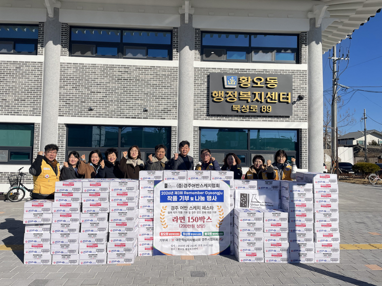 2월 3일 경주어반스케치협회은 황오동행정복지센를 찾아 설 명절을 앞두고 지역 내 취약계층을 돕기 위해 라면 50박스를 황오동 행정복지센터에 기탁했다. 이번 기부는 회원들이 자발적으로 뜻을 모아 마련한 것으로, 전달된 라면은 관내 저소득 가구와 도움이 필요한 이웃들에게 배부될 예정이다.