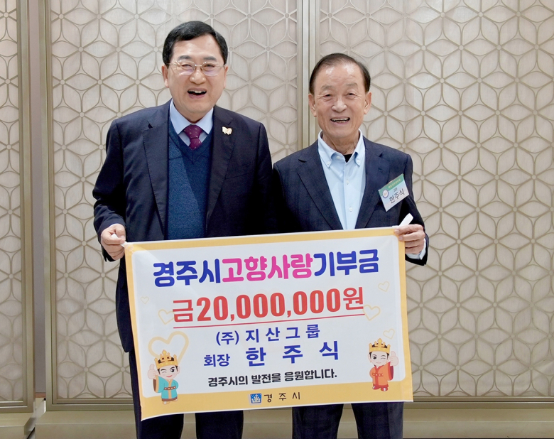 경주시는 한주식 지산그룹 회장이 고향사랑기부 최고한도액인 2,000만 원을 기부하며 올해 경주시 고향사랑기부 고액기부자 1호에 이름을 올렸다고 9일 밝혔다.