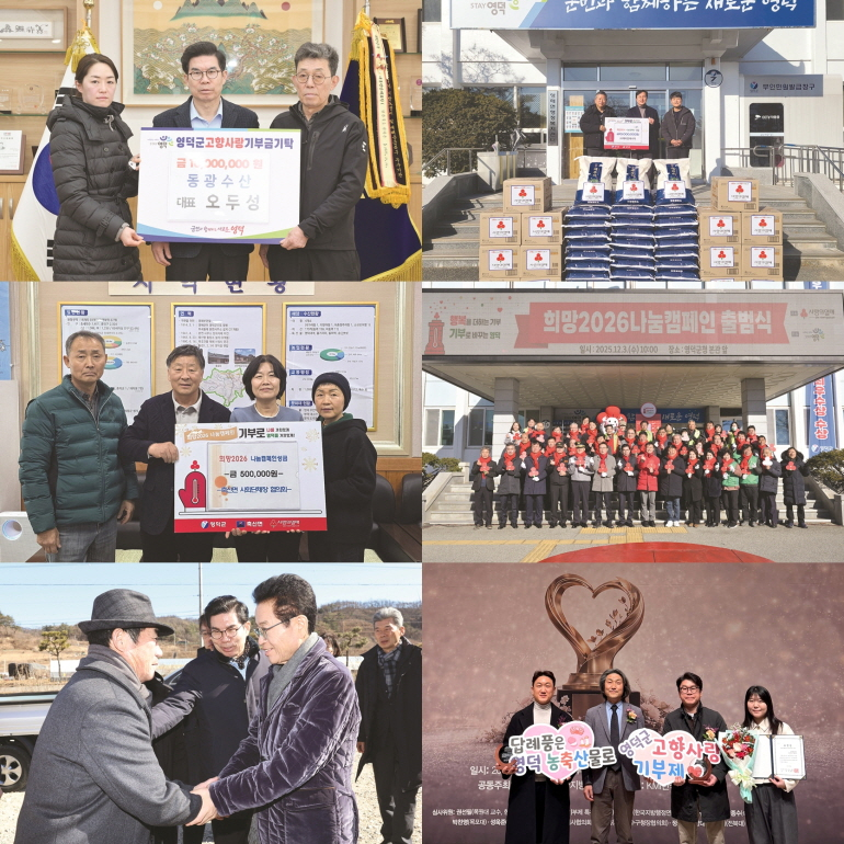 민족 대이동이 시작되는 설이 코 앞이다.경기 침체가 악화일로다.주머니 사정은 가볍고, 물가 부담은 커져만 간다.선물·상여금·임금 지급까지 직격탄을 맞았다.소상공인·전통시장 체감경기 지수는 2년 만에 최저 수준으로 떨어졌다.지역민생도 악화했다. 해를 거듭날수록 경기가 밑바닥을 치고 있는 셈이다.겨울한파도 매섭다.사람들은 저마다 사는 게 어렵다고 아우성이다.시장 상인들은 상인대로 작은 가게를 운영하는 주인들의 한숨은 깊어만 간다.올겨울은 유난히 춥다.그래서인지 가난한 사람들에게는 이 겨울이 몸서리치게 한다.하루 벌어 하루 먹고 사는 근로자들도 힘겨워한다.설이 코앞인데 임금 제때 받지 못하면 어떡하나 걱정이 태산이다.사회복지시설에도 냉기가 돈다.홀로 사는 노인들은 몸을 웅크린다.명절 외롭고 섧다 해도 돌아갈 곳이 없는 사람들만큼 서러움이 더할까.사는 게 각박하지만 그래도 인정이 넘친다.각 지자체는 이들을 위해 김이 모락모락 나는 떡국도 준비했다.사회단체는 온정의 손길을 보낸다. 가난한 이웃을 보듬고, 더불어 살아가는 공감대 때문이다. 세상인심 참 따뜻하다.▣영덕군, 제1회 고향 사랑 기부 어워드 군부 대상 영덕군이 ‘제1회 고향 사랑 기 부제 어워드’에서 대상과 표창을 동시에 받아 제도를 가장 성공적으로 이끈 지자체로 꼽혔다.군은 지난해 고향 사랑 기부 제를 시행한 전국 지자체 가운데 인구 대비 모금률이 전국 1위를 기록, 군부 대상에 해당하는 ‘지역 활성화 상’을 받았다.바다·내륙에 걸쳐 생산되는 뛰어난 특산물을 바탕으로 민간 부문 답례품 표창인 ‘오바다푸드팩토리(주)’까지 동시 수상하는 기염을 토했다.고향 사랑 기 부제 시행 이후 영덕군이 보여준 적극적인 제도운영과 답례품 발굴, 그리고 기부자 중심의 정책 추진이 탁월한 효과를 발휘한 것으로 풀이된다.군은 지역의 우수한 농·수·축 특산물을 중심으로 민간업체와 협력해 차별화된 답례품을 구성했으며, 품질과 신뢰도를 높이는 데 힘을 쏟은 결과 기부자들의 만족도를 크게 높인 것으로 평가된다.고향 사랑 기 부제는 개인의 주소를 제외한 다른 지방자치단체에 연간 2000만 원 한도 내에서 기부한다.기부자에게는 세액공제(10만 원까지 전액, 10만 원 초과 20만 원 미만 44%) 혜택과 답례품이 제공된다. 이렇게 모인 기부금은 지역 복지 증진 사업 등에 사용된다.▣영덕군, ‘희망 2026 나눔 계몽운동’ 150% 초과 달성영덕군은 지난해 12월 1일부터 올해 1월 31일까지 진행한 ‘희망 2026 나눔 계몽운동’에 애초 목표한 3억 600만 원을 150% 달성한 4억 8000만 원을 모금했다.62일간 이뤄진 나눔 행복이 성공작이다.계몽운동 구호는 ‘행복을 더하는 기부, 기부로 바꾸는 영덕’이다.지난해 3월 발생한 경북산불의 여파로 지역 여건이 어렵다는 평가 아래 목표 달성이 쉽지 않을 것이라는 우려를 낳았다.예상은 빗나갔다.지역 기관단체들과 영덕군민의 적극적인 참여와 따뜻한 나눔 정신이 빛을 발하며 여느 해보다 활기찬 계몽운동으로 목표액을 크게 넘겨 뭇사람들의 마음을 훈훈하게 했다.기탁된 성금·성품은 경북사회복지공동모금회를 통해 지역 내 저소득층과 위기 가구를 위한 긴급 지원 등 다양한 복지사업에 사용된다.▣경북도, 산불 피해 이재민에 제수용품 전달경북도는 다가오는 설 명절을 맞아 산불 피해로 삶의 터전을 잃고 어려움을 겪고 있는 이재민들을 만나 애로사항을 듣고 따뜻한 명절을 보낼 수 있도록 제수용 농산물 등을 전달, 이재민들을 위로했다. 초대형 산불로 한순간에 삶의 터전을 잃고 현재 임시조립주택에 거주 중인 영덕읍 화수리 이재민들에게 도민들의 위로 및 응원의 마음을 담아 과일과 떡국 떡, 한과 등 설 제수용품을 전달했다. 영덕 화수마을에는 이철우 경북지사가 직접 방문, 애로사항을 듣고 슬픔을 함께 나누는 시간을 가졌다. 전달한 꾸러미에 포함된 과일과 농산물은 산불 피해를 본 5개 시군 농가에서 생산된 우수 농특산물로 민생경제 회복과 지역 상생의 의미를 더했다.이철우 경북지사는 “이번 설 명절 산불 이재민 방문은 이재민들의 목소리를 가까이에서 듣고 위로할 수 있는 뜻깊은 시간이었다. 앞으로도 이재민들이 하루빨리 일상으로 돌아갈 수 있도록 주거 안정과 복구 지원에 최선을 다하겠다”라고 말했다.▣영해면 기업·단체, 나눔 문화 실천영해면의 기업과 단체들이 사회적 책임과 상생의 가치를 실현하기 위해 ‘희망 2026 나눔 계몽운동’ 동참에 줄을 잇고 있다.㈜해파랑 에너지가 지역 어르신들을 위해 성금 500만 원과 500만 원 상당의 식품을 영해면에 맡겼다.△경도 조경 300만 원 △영덕 나눔 산림경영 단 사회적 협동조합 200만 원 △드림 산업과 우주 건설, 영해면 새마을회가 각 100만 원의 성금을 마련, 계몽운동에 힘을 보탰다.권도혁 영해면장은 “지역에서 활동하는 기관과 단체는 물론 주민들까지 나눔이 이어지고 있어 지역사회에 온기를 더하고 있다”라고 말했다.권 면장은 “기탁된 성금과 물품은 도움이 필요한 이웃들에게 소중히 사용될 수 있도록 하겠다”라고 전했다.▣영덕 동광 수산, 고향 사랑 기부금 1000만 