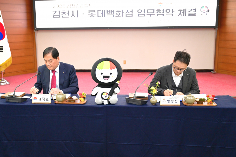 김천시는 20일 김천시청에서 롯데백화점과 김천김밥축제의 성공적인 개최 및 브랜드 가치 확산을 위한 업무협약(MOU)을 체결했다.이날 협약식에는 배낙호 김천시장과 임형빈 롯데백화점 F&B 부문장 등 양 기관 관계자 10여 명이 참석한 가운데 협약서 양측 대표의 인사말을 시작으로 서명 및 교환, 기념촬영 순으로 진행됐다. 이번 행사는 김천김밥축제의 전국적인 인지도 확산에 따른 관광객 유입을 확대하고, 김천시의 축제 콘텐츠와 롯데백화점의 유통·마케팅 인프라를 결합한 마케팅 협력 모델을 구축하기 위해 마련되었다. 업무협약에 따라 양 기관은 백화점 내 사전 팝업스토어를 운영하고, 온·오프라인 홍보 채널을 활용한 공동 마케팅을 추진하는 등 김천김밥축제 홍보와 관광객 유치를 위해 적극 협력하기로 했다. 김천시는 이번 협약을 통해 축제 개최 전, 수도권에서 이벤트를 진행해 김천의 매력을 알리고, 축제 분위기를 붐업시키며 관광객의 발길이 자연스럽게 김천으로 이어지도록 할 계획이다. 배낙호 김천시장은 “로컬브랜드의 자부심 김천김밥축제가 이번 롯데백화점과의 협력을 통해 축제 브랜드 가치를 높이고 나아가 김천 관광을 활성화시키는 계기가 될 것”이라며 “앞으로도 다양한 협력을 통해 대한민국 대표 축제로 성장시켜 나가겠다”고 말했다.한편, 국가 지정 문화관광예비축제에 선정되며 문화콘텐츠로서 그 가치를 인정받고 있는 김천김밥축제는 오는 10월 23일부터 25일까지 김천 직지문화공원 및 사명대사공원 일원에서 개최될 예정이다.