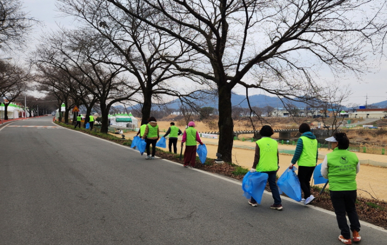 이날 회원들은 이른 아침부터 축제장 주변 도로와 산책로를 돌며 겨우내 쌓인 쓰레기를 수거하고 주변 환경을 정비했다.