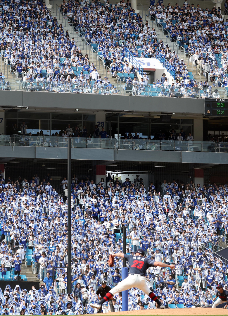 29일 대구 삼성라이온즈파크에서 열린 2026 신한 SOL뱅크 KBO리그 롯데 자이언츠와 삼성 라이온즈 경기. 관중석이 팬들로 가득 차 있다.