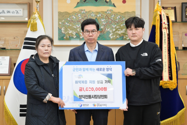 영덕전통시장상인회가 지역사회와 상생하기 위해 지난 9일 김광열 영덕군수를 만나 어려운 이웃에게 전달해 달라며 성금 100만원을 맡겼다. 상인회 구다남 회장은 “지난 21년 화재로 삶의 터전을 잃은 상인들이 지역사회와 이웃들의 도움으로 다시 일어서게 됐듯이 이제는 우리 상인회가 지역사회와 이웃들에게 작은 도움의 손길을 전하려 한다”라고 말했다.