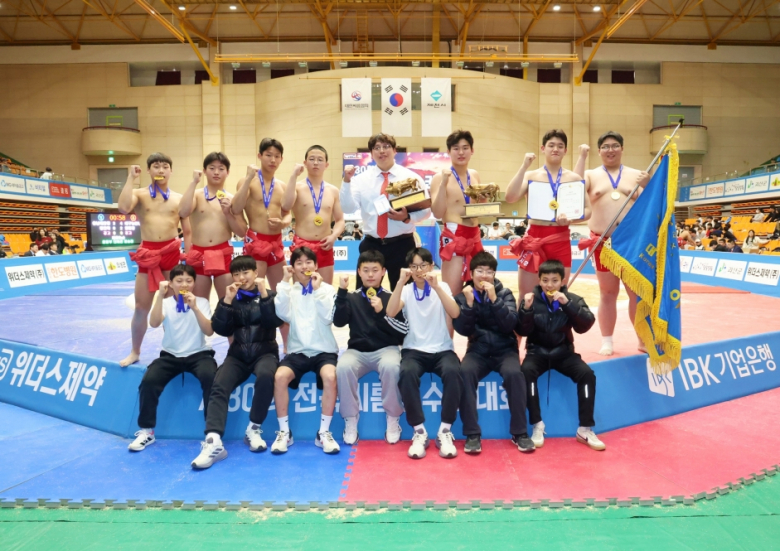 능인중학교(교장 김익수) 씨름부가 지난 4월 3일(금), 충북 제천시에서 열린 제80회 전국씨름선수권대회 중학부 단체전에서 우승을 차지했다. 이번 우승으로 지난해에 이어 2년 연속 선수권대회 중학부 단체전 우승이라는 큰 성과로 팀 전체에 큰 의미를 남겼다. 이로써 2년 연속 대회 정상에 오르며 중학부 씨름 강자임을 다시 한번 확인했다. 이날 결승전 초반 흐름은 순탄치 않았다. 첫 번째 경장급, 소장급경기에서 연달아 득점을 허용했지만, 세 번째 용사급 경기에서 3학년 최호진 선수가 ‘잡채기’와 ‘밀어치기’를 성공하며 2-1을 만들었다. 이어진 네 번째 경기에서는 3학년 강동현 선수가 `들배지기`와 `밀어치기`로 승리하며 균형을 맞췄다. 다섯 번째 용장급 경기에서 태안중학교에 다시 한 점 내주며 2-3으로 벼랑 끝에 몰렸으나, 능인중의 뒷심은 매서웠다. 이어진 여섯 번째 경기에서 역사급 3학년 박시후 선수가 연이은 안다리로 한 점 가져왔고 기세를 일곱 번째 장사급 주자로 나선 3학년 임현경 선수가 두 판 연속 들배지기를 성공시키며 최종 스코어 4-3로 경기를 마무리했다. 한편, 같은 대회 개인전에서도 성과를 거두었다. 용사급 최호진(3학년) 1위, 청장급 강동현(3학년) 2위, 역사급(3학년) 박시후 3위를 차지해 겹경사를 맞았다. 한다복 감독은 “운동에 전념할 수 있도록 지지하고 적극 지원해주신 학교에 감사 인사를 전하며 이번 우승을 계기로 앞으로 남은 대회에서도 좋은 성과를 내기 위해 더 열심히 훈련하겠다”고 소감을 전했다. 김익수 교장은 “학생들이 이번 대회를 통해 보여준 열정과 성과는 학교의 큰 자랑이며, 앞으로도 씨름부가 더 발전할 수 있도록 아낌없이 지원하겠다”라고 밝혔다.대구광역일보