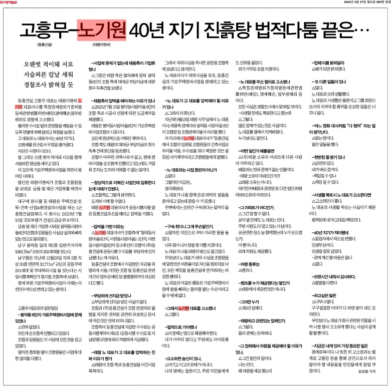 태왕 노기원 피소사건 대구경찰청 반부패수사대서 조사