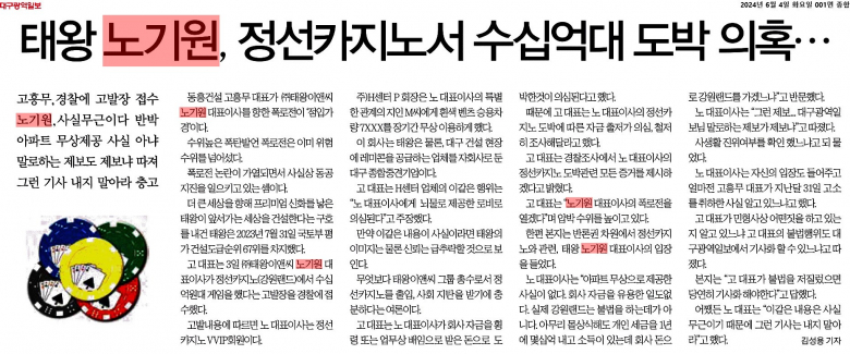 태왕 노기원, 본지 기사 모두 허위사실···소송