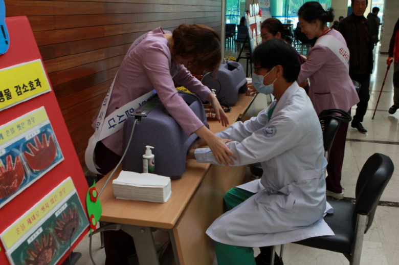 포항시 북구보건소는 지난 15~19일까지 경북도 포항의료원 감염관리실과 공동으로 포항의료원에서 의사, 간호사 등 직원, 환자, 보호자, 간병인, 일반시민을 대상으로 손 씻기 이동 체험관을 운영했다.